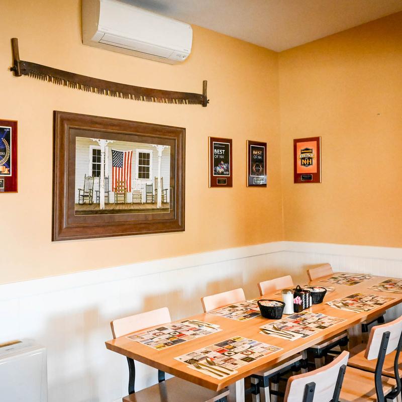 The Farmer's Kitchen boasts a hearty home cooked breakfast served all day long with lunch starting at 11:00. Proprietor Duane White grew up in New Durham and started in the kitchen at age 4 (so they tell him) at his father's place in Wolfeboro.
